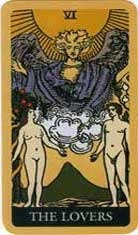 The Lovers stands for love – but it also represents choice! If this is your card, you will almost certainly find your path through life strewn with temptations and opportunities that could take you in all sorts of exciting directions – but which way will you go? The male and female figures in the card can also be seen as complimentary energies of yin and yang, masculine and feminine. Your life’s journey will involve learning how to bring together opposites to create a magnificent whole. Remember, the card also shows an Angel, meaning that you can access divine protection and inspiration if ever you find yourself pulled around in a dilemma.The Lovers stands for love – but it also represents choice! If this is your card, you will almost certainly find your path through life strewn with temptations and opportunities that could take you in all sorts of exciting directions – but which way will you go? The male and female figures in the card can also be seen as complimentary energies of yin and yang, masculine and feminine. Your life’s journey will involve learning how to bring together opposites to create a magnificent whole. Remember, the card also shows an Angel, meaning that you can access divine protection and inspiration if ever you find yourself pulled around in a dilemma.