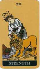 The Chariot is about fast movement and using your will to pull together forces that otherwise might gallop off in different directions! Your life’s journey is all about learning how to control your emotions and needs, working out a direction for yourself and managing to hold everything together even at those times when it seems life is moving forward at a fantastic pace.