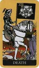 Death signals transformation and rebirth. Your life’s journey is about breaking free of old patterns and structures and letting go of whatever no longer serves you. You may find that your life is scattered with endings, but remember that the energy of this card is all about clearing away the old to make way for the new. Every ending signals a new beginning and a fresh start, so whatever happens, you will always have the opportunity to build something amazing from scratch. To make the most of the energy of this card, focus firmly on the future and practice letting go of the past with love.
