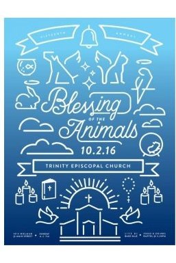 In the blessing of the animals, there may be the invitation for (well behaved) animals to attend worship. Last year in my church, a number of dogs, two cats in carriers, and one snake were noted. Or there might be a special service outdoors, say in the cloisters, with all pets welcome. The pets that show up range from horses to spiders. I heard of an Episcopal church in New York City that made a liturgical procession of it, and the creatures involved included a roach in a glass jar reposing on a purple liturgical pillow. (That one may have represented not so much pet kind as unavoidable fellow inhabitants of the city. Then again, I’m sure that some blessing of the animals somewhere has had a Madagascar hissing cockroach brought to be duly blessed; some people do keep these as pets.)