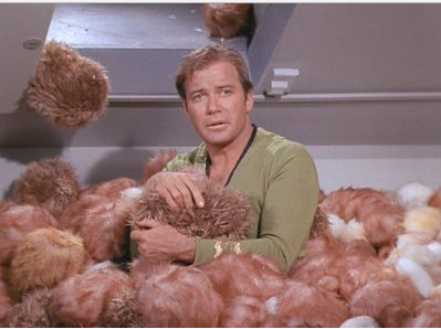 One of the first things that comes to mind for me when thinking about petlike alien animals in space would be the tribble, from the famous Star Trek episode “The Trouble With Tribbles.” They’re soft, they kind of purr and oh did I mention they multiply like nobody’s business? The rabbit of the spacelanes! I always loved that episode…