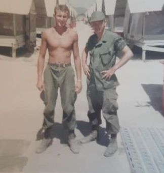 Kenny and another soldier in VietnamAt the end of 1969, the inevitable happened—Kenny was drafted. He reported to the Military Entrance Processing Station in Milwaukee, together with all of the other local draftees. He was given a physical exam, signed some paperwork, and was sworn-in on active duty. From there, he and the other draftees destined for the Army boarded a plane en route to Basic Training, or “boot camp”, at Fort Campbell, Kentucky. Although they arrived in early December, their formal Basic Training was not scheduled to begin until the full complement of draftees reported in January. In the interim, they trained informally for the two or three weeks preceding the holidays. They were even permitted to take leave and go home for Christmas. Once they returned, the Army’s intense eight-week Basic Training program began.