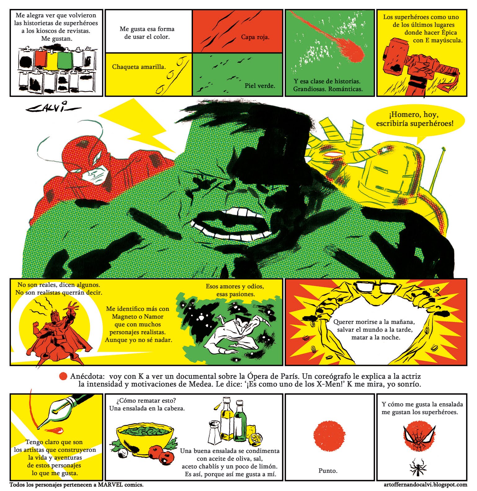 PD: la lista de autores que inspiraron esta página es inmensa, pero van algunos, los puntuales: Stan Lee, Jack Kirby, Steve Ditko, Marie Severin, Chris Claremont, Bill Everett, Roy Thomas, Gene Colan, George Roussos, Dick Ayers, Dave Cockrum, Herb Trimpe.