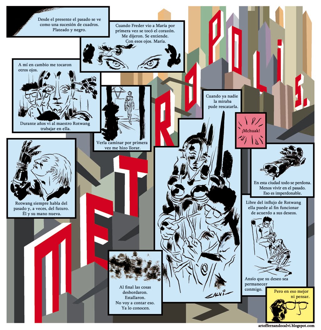 Esta es la historieta que hice con motivo del reestreno de Metropolis, completa y maravillosa, como no se veía desde 1928 (!) en el Malba.