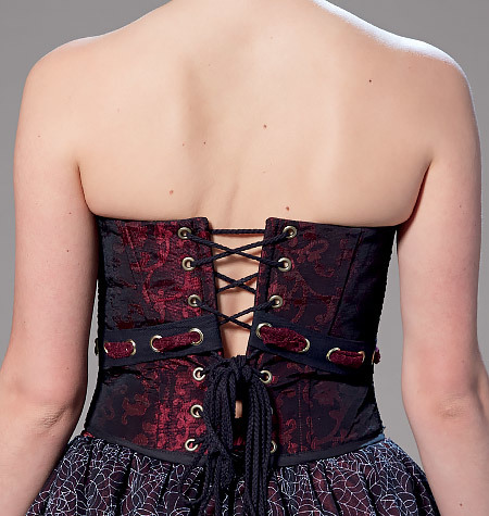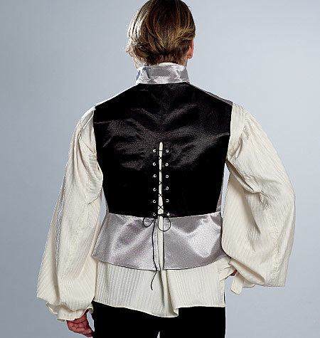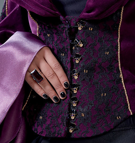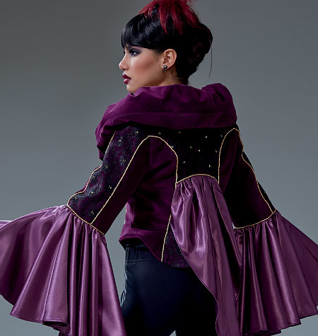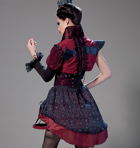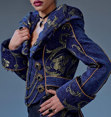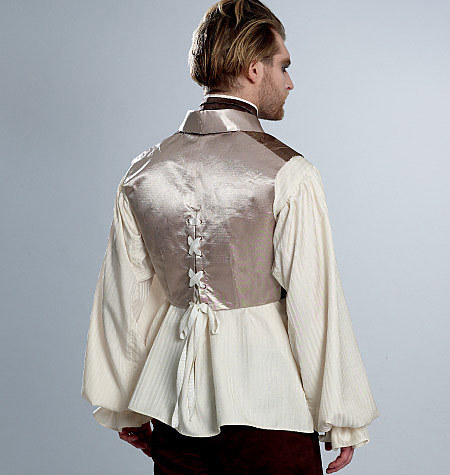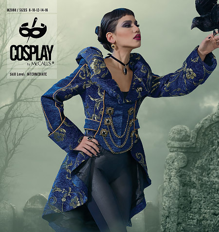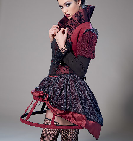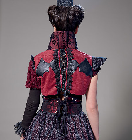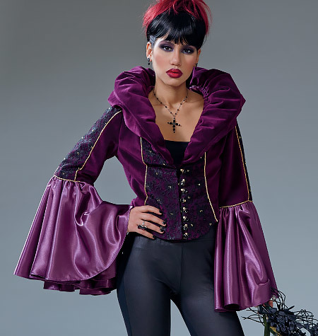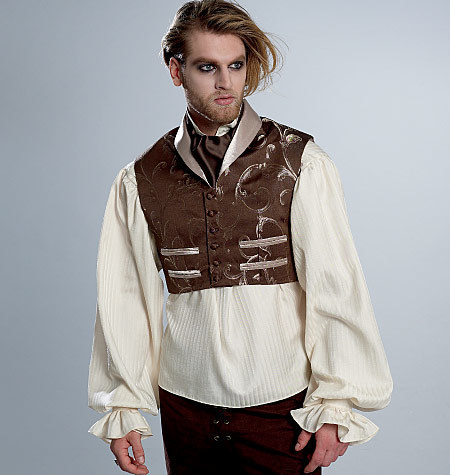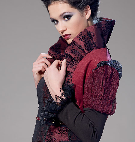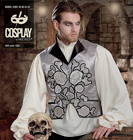 For men, McCall’s latest offering is Thirst, a billowed shirt and vest combination excellent for eighteenth and nineteenth century classical vampires. Yes, I do think that a steampunk vampire costume is a bloody good idea.For the vest, McCall’s recommends fabrics like brocade, cotton sateen, damask, and lightweight wool, with satin and silk for the lining. Suggested shirt materials include cotton and silk. The tips section covers creating a unique look using appliqués. Also, the pattern is listed as easy skill level, so if you’re new to sewing, you shouldn’t have much trouble with this one.As for ideas to give this a steampunk twist, consider metallic-colored contact lenses, copper or gold colored fangs, or rings with gears. Sometimes such small details can shift a costume toward a steampunk aesthetic. The appliqué advice can help you create your own steampunk-inspired pattern for the vest as well.Thirst sells on the Cosplay by McCall’s site for $14.95