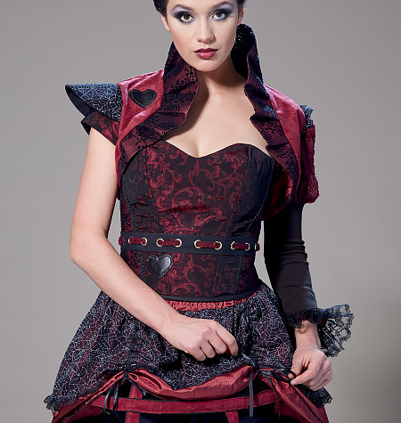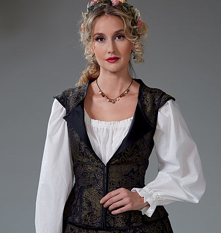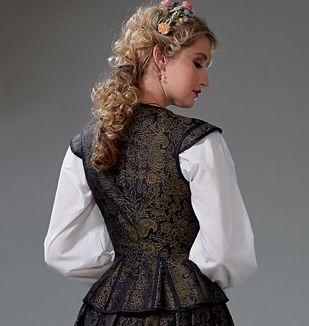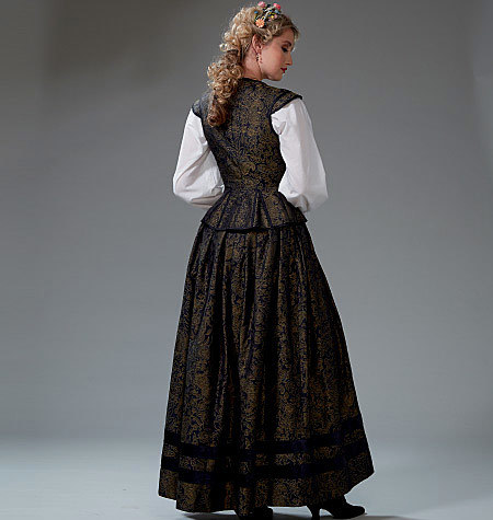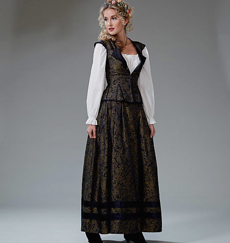 What does the Victorian-era mean to steampunks? Perfect. Abagail is ideal for a Scottish woman in Victorian times, but would honestly work for any British cosplay, or for the American Wild West. This skirt, vest, and petticoat pattern is listed as of Intermediate difficulty, and comes tih tips for underlining.Fabrics McCall's recommends for the vest and skirt include damask, taffeta, cotton sateen, and silk, with cotton voile, batiste, or organdy for the lining, and cotton or cotton sateen for the skirt. One way to gear this toward steampunk is to choose fabric with patterns that reflect the culture. Another is to add accessories. The Hat Madders hat, for instance, could work well. Or, add goggles, a steampunk-style prop gun, and the like. Here's where you get to let your imagination run wild.