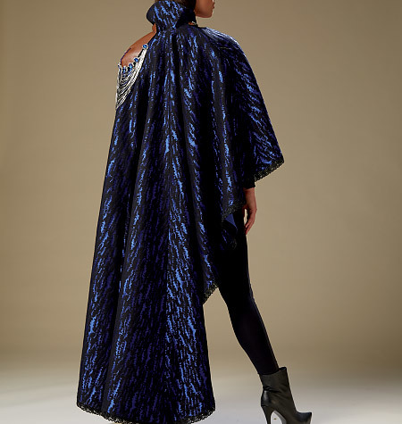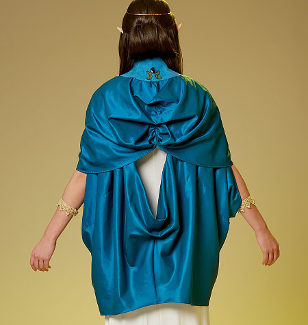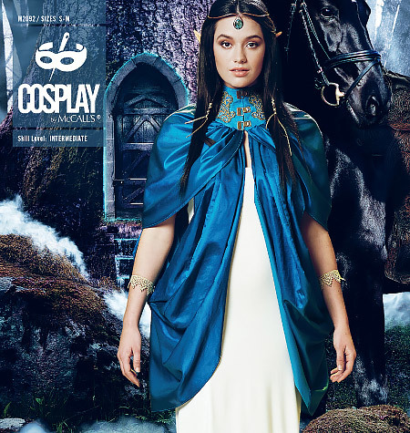 There are capes, and then there's Cloak: Phantasy. With this pattern, you can create two types of capes. The first is a short cloak with fancy drapery and pleating, the second, a long cape with a chest harness. To me, the first looks more regal or ceremonial, the second, what one might expect to see on an adventurer. Are you thinking fantasy with steampunk elements yet? Add Victorian-inspired jewelry or trip, a belt with various gadgets and a replica nineteenth century pistol, goggles or manacle, and a pocket watch.Suggested fabrics include silk, rayon, poly blend, and synthetic leather. See the website for more. Cloak: Phantasy ios rated intermediate in skill level and retails for just $14.95.
