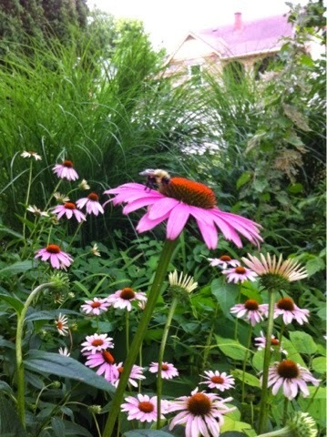 It hadn't rained in over two weeks, so everything was extra hot and dry and drooping a little (the squash, at least; the tomatoes are fine) but we are supposed to get more rain tonight and tomorrow, and it's also supposed to cool off (a lot!)