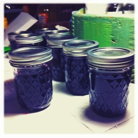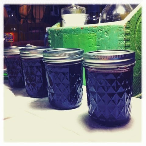 And Blueberry! The blueberry made 3 3/4 half pints, so the not-quite full one will have to be eaten first.