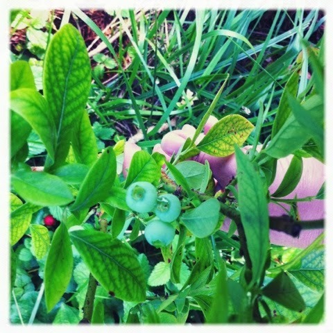 My Raintree order came, so I planted that yesterday evening. Five blueberries and three grapes. We'll see how they do on the hill.