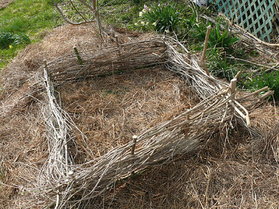 This is in between the Wolf River and Wealthy apples trees at the top of the hill. This is also only about halfway done. And I'm running out of cut branches! I can't believe it! The space between the round hay bales and my shed was full of branches, and they're almost all gone!