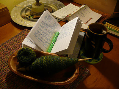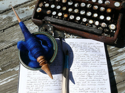 So yesterday it was nice enough outside that I brought my notebook and spinning and pen and inkwell outside to write a bit before I had to leave again. It was so lovely to sit in the sunlight and write! And the sky was so brought and blue and it felt like spring.