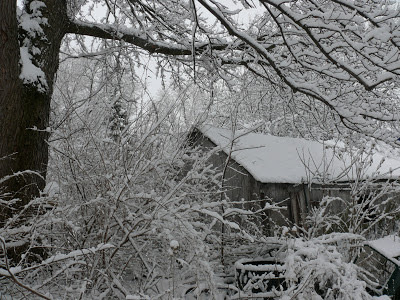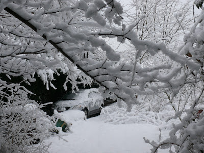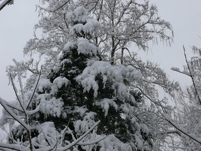 While attempting not to get pelted by the snow falling from the tree branches, I went out this morning and took a few pictures:
