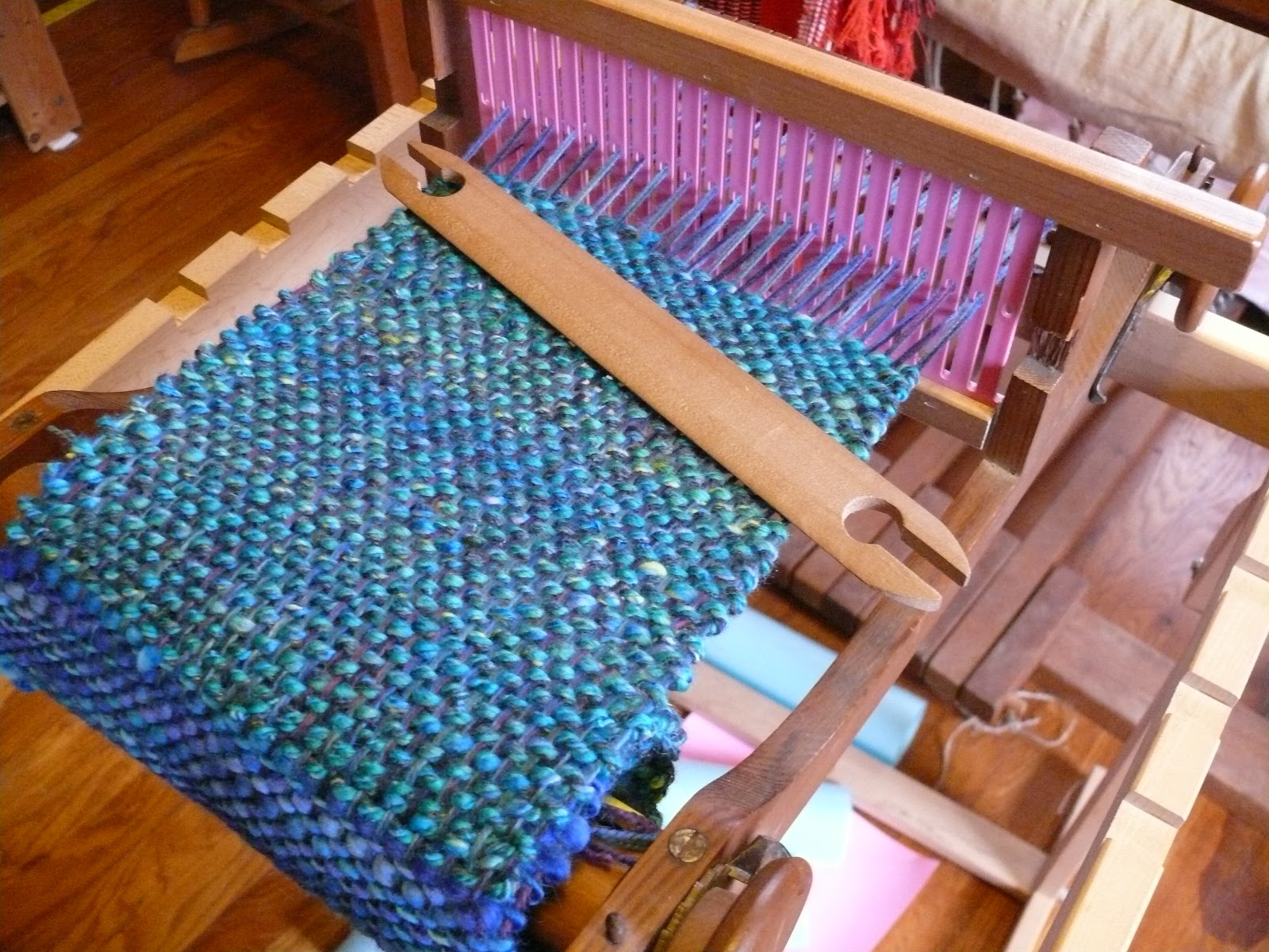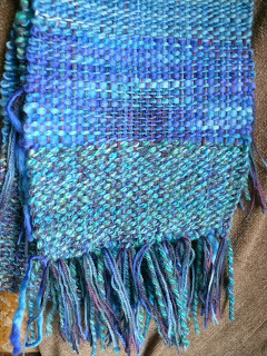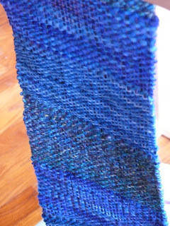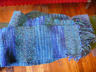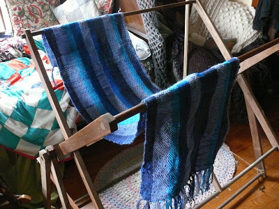 So my intention was to warp the Big Green loom today, but then I walked upstairs and realized I could finish my blue shawl with about an hour's worth of weaving, so that's what I did. I'm really happy with how it turned out!
