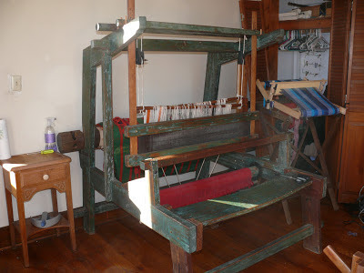 This has been a busy weekend; with the craft show yesterday and an auction today, I haven't been home much at all. However, I am now the proud owner of a giant warping mill--it needs some cleaning and conditioning, but I think it will work (once I figure out how to use it!) So that means I can warp my looms without direct warping them, which is a good thing. :)