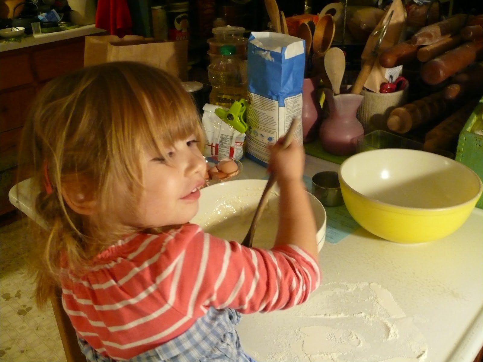 Mixing the sourdough. She was really good at mixing!Mixin...