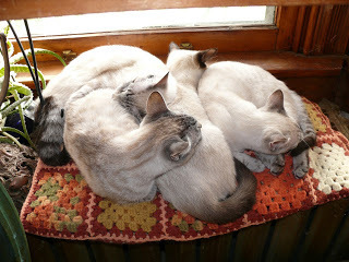 Yesterday, I took Gracie and all five kittens to the vet--it was time for them to be fixed. They stayed there overnight, and it was way too quiet here all day long yesterday; I once thought that three cats were a good number, but oh my gosh, it was like the house was empty.