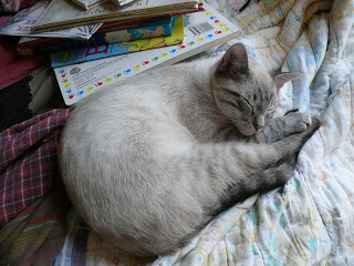 We just spent a nice quiet hour sitting on my bed--I started reading Finder again, since I have my perennials sitt...