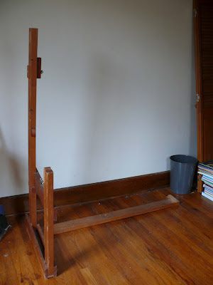 The big loom is upstairs. It needs some additional cleaning before I put it back together.
