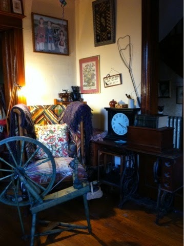 Christmas was great, and now it's the New Year! I will post my short list of resolutions tomorrow or over the weekend. Last night, I moved around some furniture in the living room and library: The corner cupboard fits perfectly inside the closet! That meant moving the reading chair into the living room... And moving some other stuff around as well. It looks really nice!