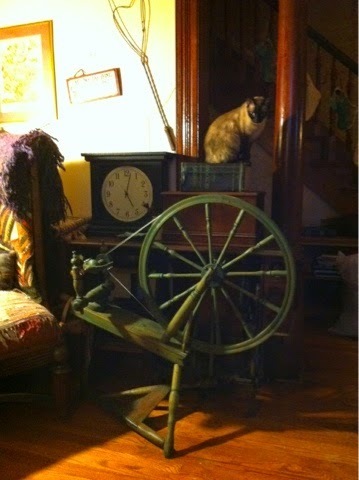 This weekend's goal was to clean off the table in the library/ office so that I could have a dedicated editing/rewriting spot. I have one corner of the table left, but it's looking good so far! I also found some beeswax candles on eBay that fit into my candleholder... And made a few spindles... And Oliver found a warm spot to sleep.