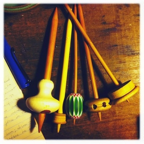 So I'm still working on the "Fill All the Spindles" project. (Clearly, I have too many spindles. But once I get down to the little ones, it will go fast!) Forgot the one in progress... And the sampler spindle (for the samples that come with purchased fiber.)