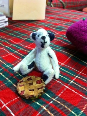 The craft show went very well! It was an above-average year, so I'm not complaining. I did not buy a lot; one Christmas present, and this: A cherry pie for my little bear. :) It was a good day.