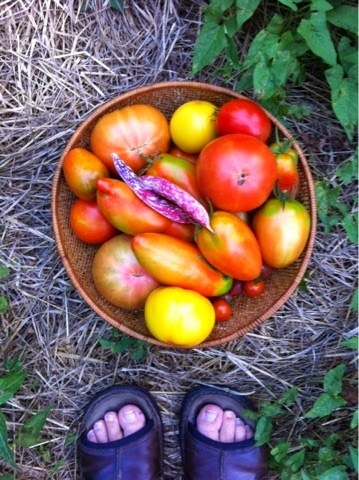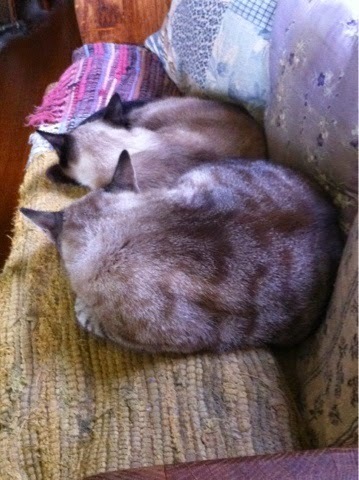 Writing, processing tomatoes, corn, and peppers, weaving, spinning, gathering up stuff for the yard sales this weekend. Also, cute kitty picture below...