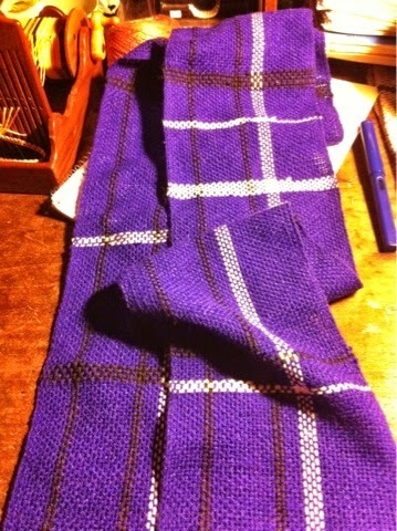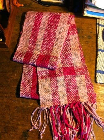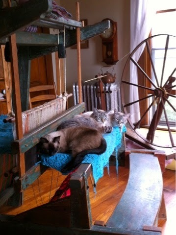 I have been hard at work on the rewrite/revision of By Any Other Name, so sorry about the lack of posts. I've also been bust weaving (and spinning) while thinking about what happens next! I've woven three scarves this weekend. Here is one of them, with bonus kitty pictures: