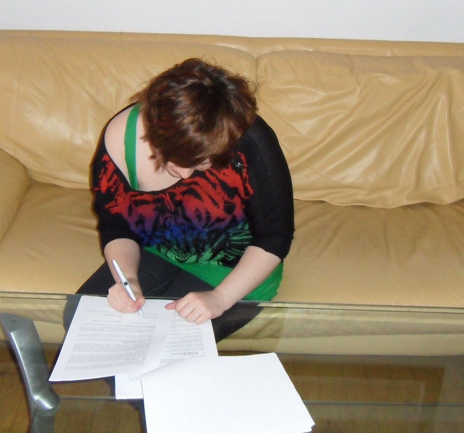 Even doggie was excited and wanted to take a look at my contract!So now whenever I think: "Maybe I'm just imagining the whole thing. Maybe tomorrow I'll wake up and that lovely bookdeal turns out to be a big dream.", I'll just take a look at these pics:
