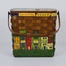 My grandmother wore kitten heels, twin sets that she knitted herself and I wanted to be just like her. The first purse I remember is her painted basket. It was made of brown “straps” and painted with colorful buildings. I’d stare at the bright buildings and wonder who lived in them. What were their lives about? A single penny was glued to the fliptop lid. I thought it was completely wonderful and filled with grownup lady secrets. All these years, I still don’t know everything that was kept inside it. Here are the things I’m certain were inside: filterless Camels, a lighter, and reading glasses.