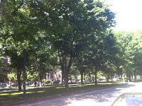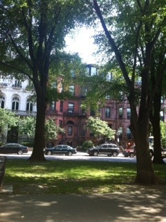 Brownstones on Commonwealth Ave.After looking for zombies in the Boston Public Library, my friend Susan L. and I headed over to Commonwealth Ave where Hayden, the main character in my Undead books from Ellora's Cave, stays. He lives in a borrowed apartment in one of the awesome brownstones that are on both sides of the boulevard that runs down the center of Commonwealth.