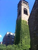 Bell tower of The First Baptist ChurchOne building I found that is likely to make its way into a future story is The First Baptist Church. It has a wonderful bell tower covered with ivy. The open windows near the top are inspiring. I can see Mattie perched up there in a snow storm, all covered in ice, her white fingers gripping the ledge. Love it.