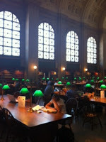 Bates HallA couple days after mailing the contract for Servicing the Undead, book 2 in my Cold Hunger series, I took myself and a friend to the Boston Public Library. The first book in the series, free read Undone by the Undead is set in the BPL and the second also has a scene there, so I thought I'd go check the place out, see if I got things right and get some ideas for future books.Good news: I got the details of Bates Hall right. Thank you internet image search. The wood tables where Mattie and Hayden have sex are just as solid and sturdy as they look in the pictures.