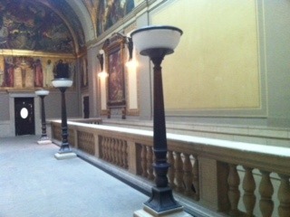 Koussevitzky RoomOutside the rare book room is a fabulous room, which actually looks more like a hallway, with beautiful murals and street lamps. I wish we'd been there at night, because I imagine it's awesome. Look for this spot to show up somewhere in one of the Cold Hunger books. Who knows, maybe I'll even go back there, have a seat on the slate floor and write a few scenes right there by one of those lamps.Another thing that will probably make its way into a future story is an amazing elevator which we nicknamed the Sexavator because the second you step into it you think, "oh yeah, I could have sex in here." It's small enough inside that it feels intimate, there is a mini cathedral ceiling, dim lighting, a round, frosted window, and cozy wood paneling. Also, it's out of the way enough that you get the sense that you'd have enough time for whatever quick act you have in mind.