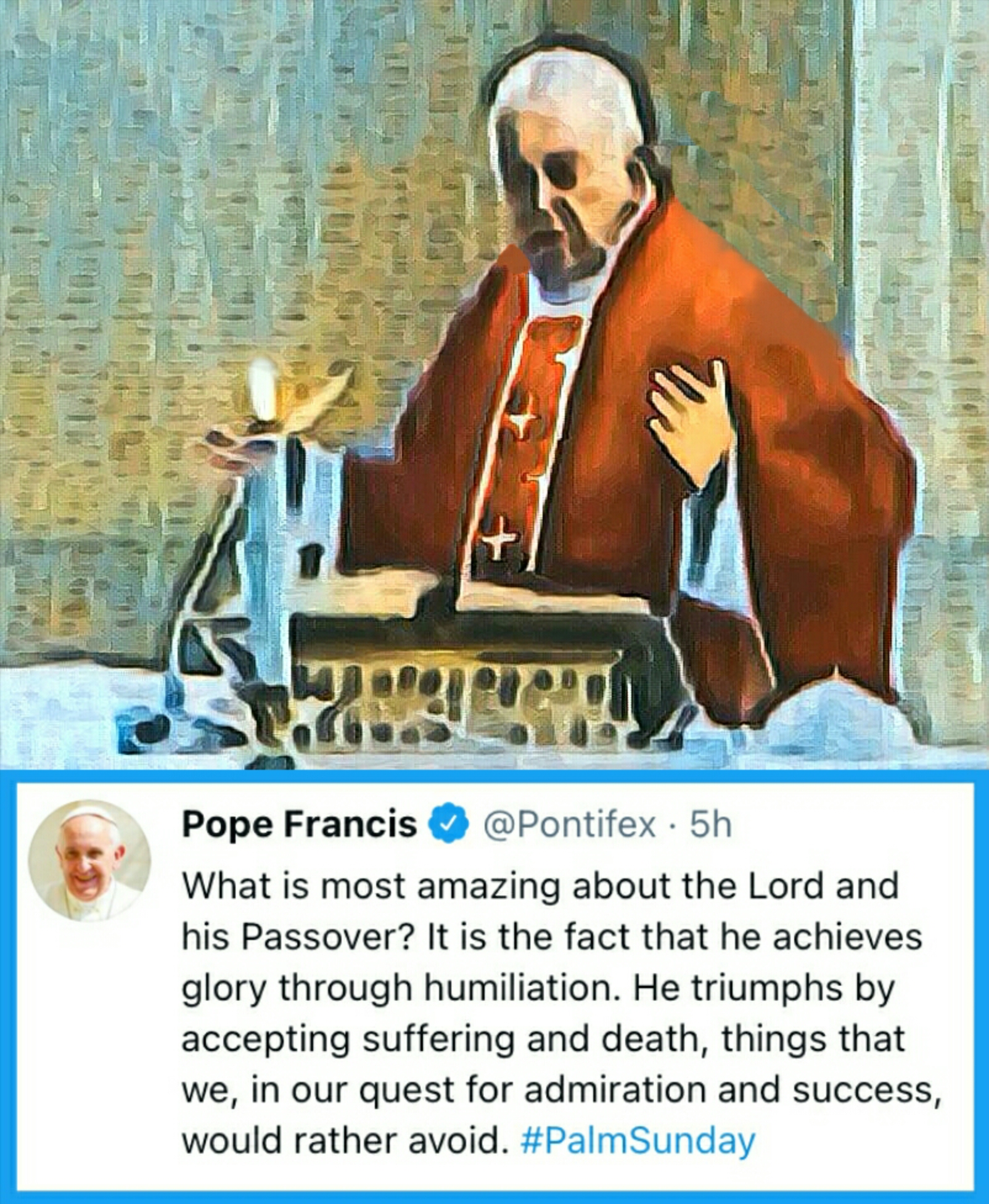 Here below is another particular selection from my reading this week, which gives insight into the seemingly "peculiar way" (in human terms) that Jesus "fails" to play the winning hand that his triumphant entrance into Jerusalem had given him. He is clearly pursuing something beyond the boundaries of merely human, earthly success: