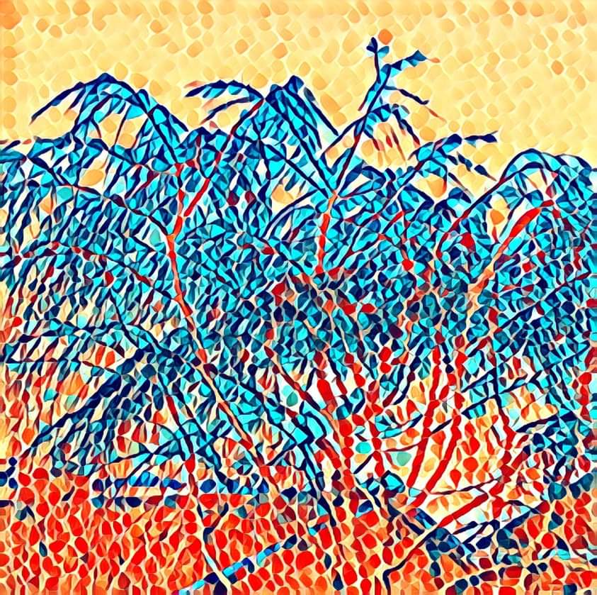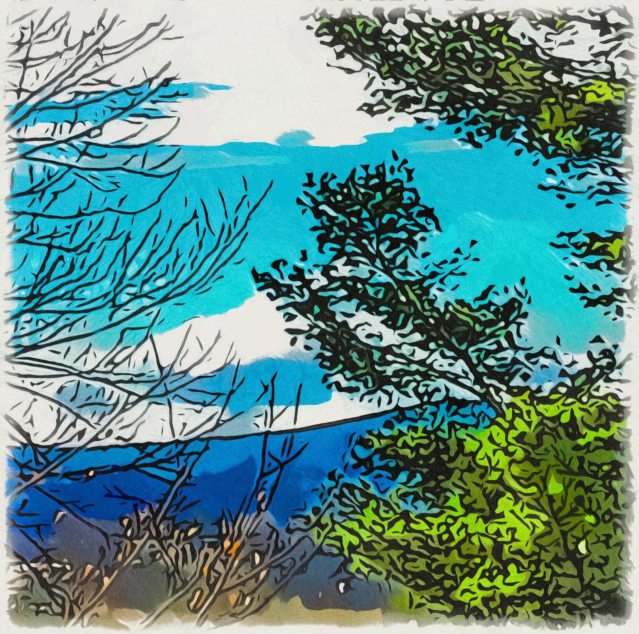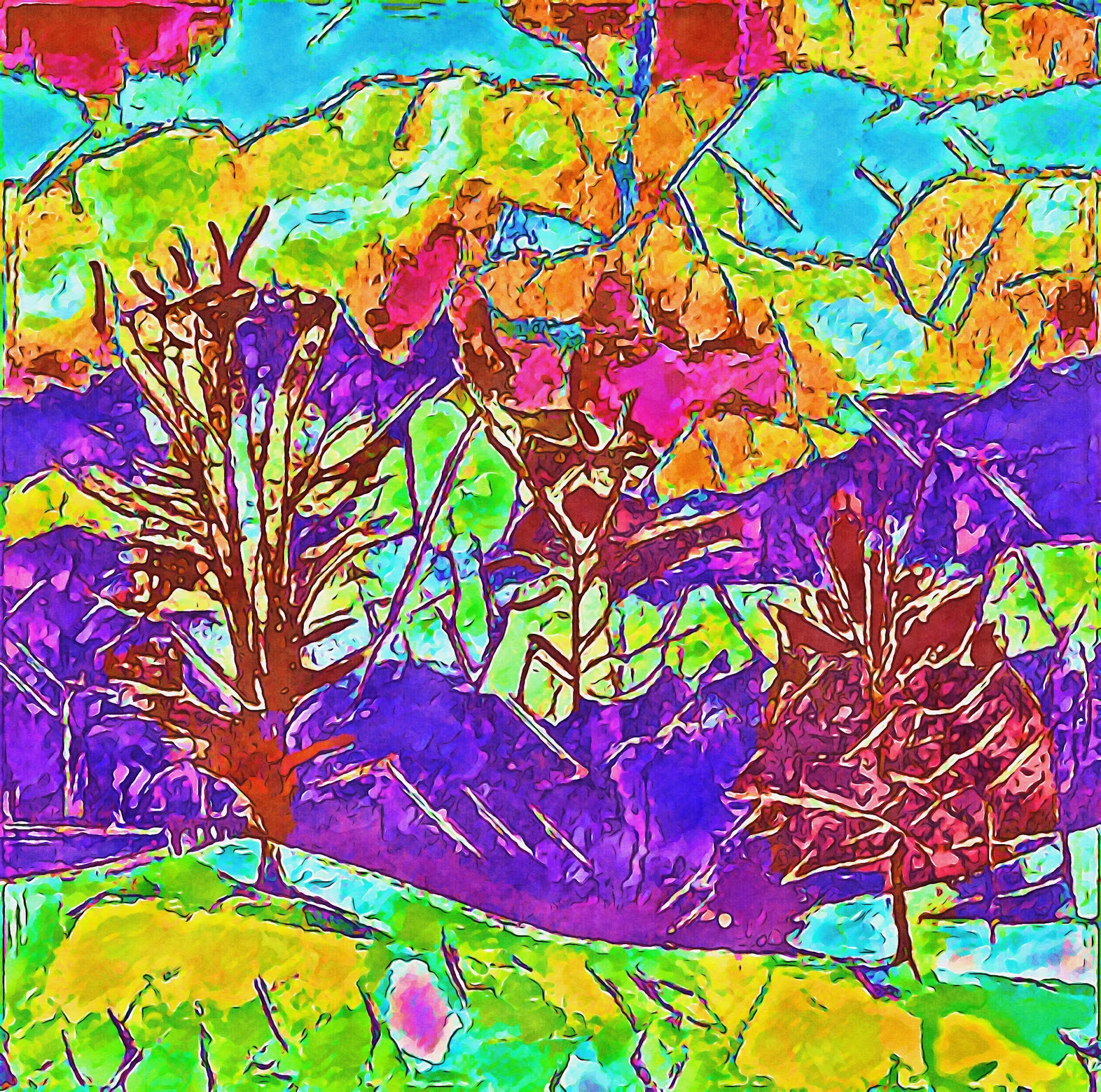 These are experiments that consist in taking photographs and "recasting them" with colors and (the illusion of) textures that availible to me in my now-considerably-enhanced (but by no means "professional") Digital Art and Graphics Studio.
