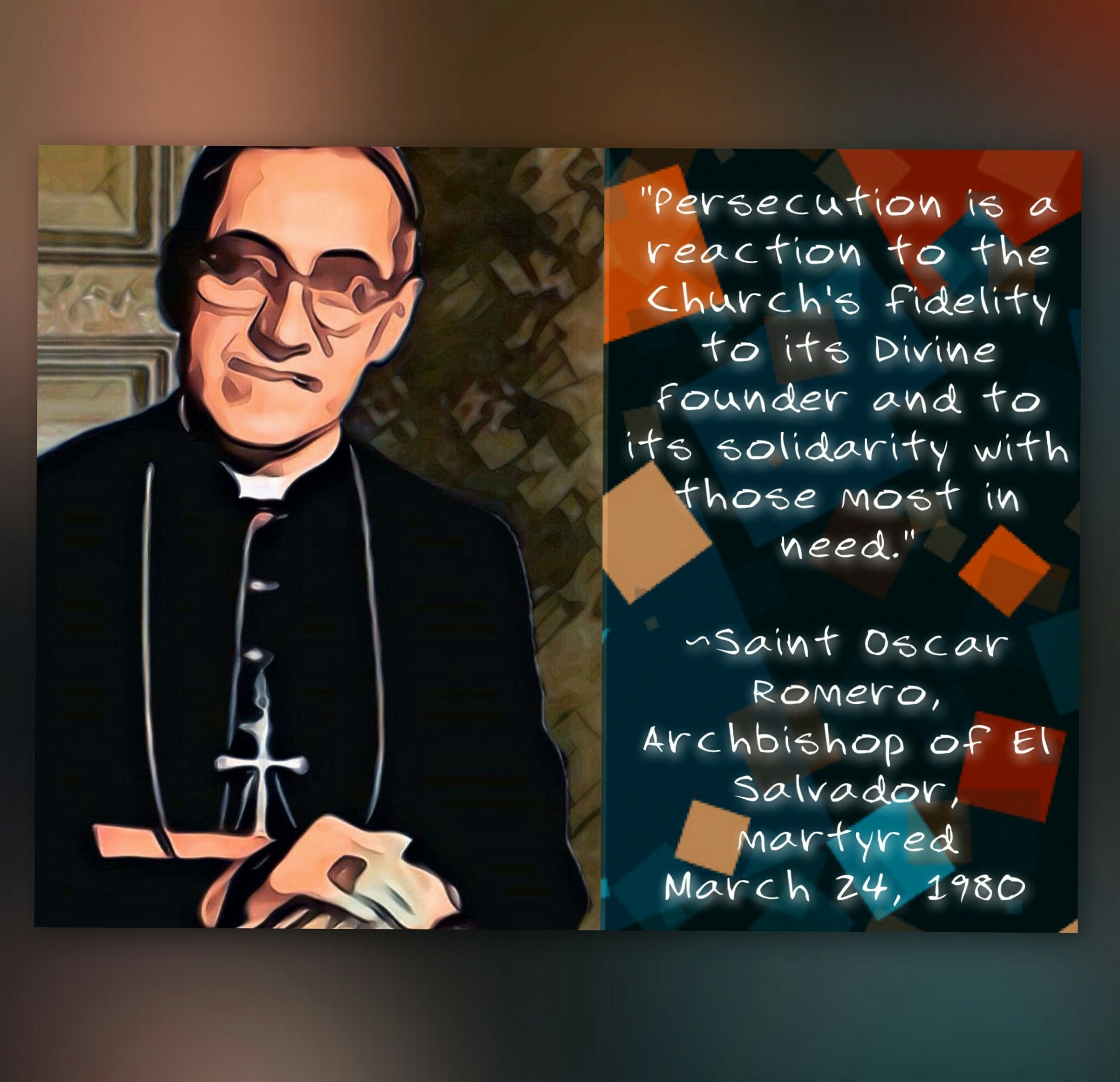 Romero was assassinated in the late afternoon on March 24, 1980 while saying Mass for the religious sisters and patients at Divine Providence Hospital where he lived. A professional hit man of a "Death Squad" fired a single shot from the back of the church after the Archbishop had concluded his homily and as he approached the altar for the Offertory. It is fitting to mark this day with quotations from that final homily. In these few words, we learn much about how the Redemption of Christ penetrates all of life, invests everything with meaning, and grounds the action that fosters and cherishes whatever is authentically human.