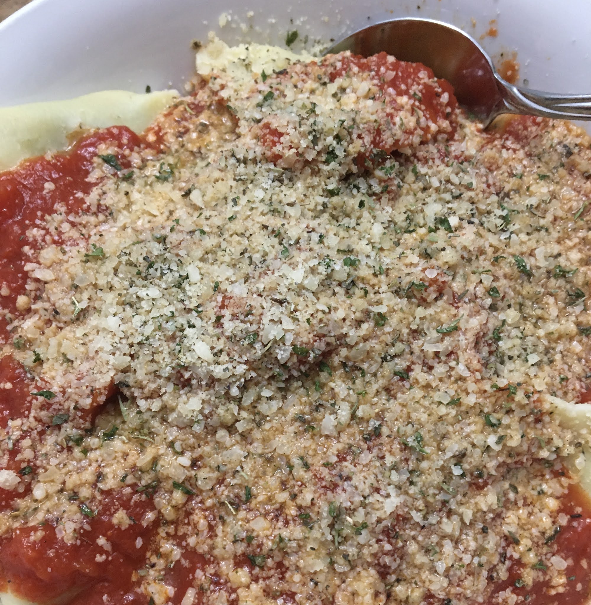 But we did ask for the prayers of Saint Patrick here at home. And we ate good food with a touch of the green theme, as usual: the lovely “O’Ravioli” with spinach (green!) and a bit of parsley (green!) sprinkled with the cheese on top [picture 1, below].