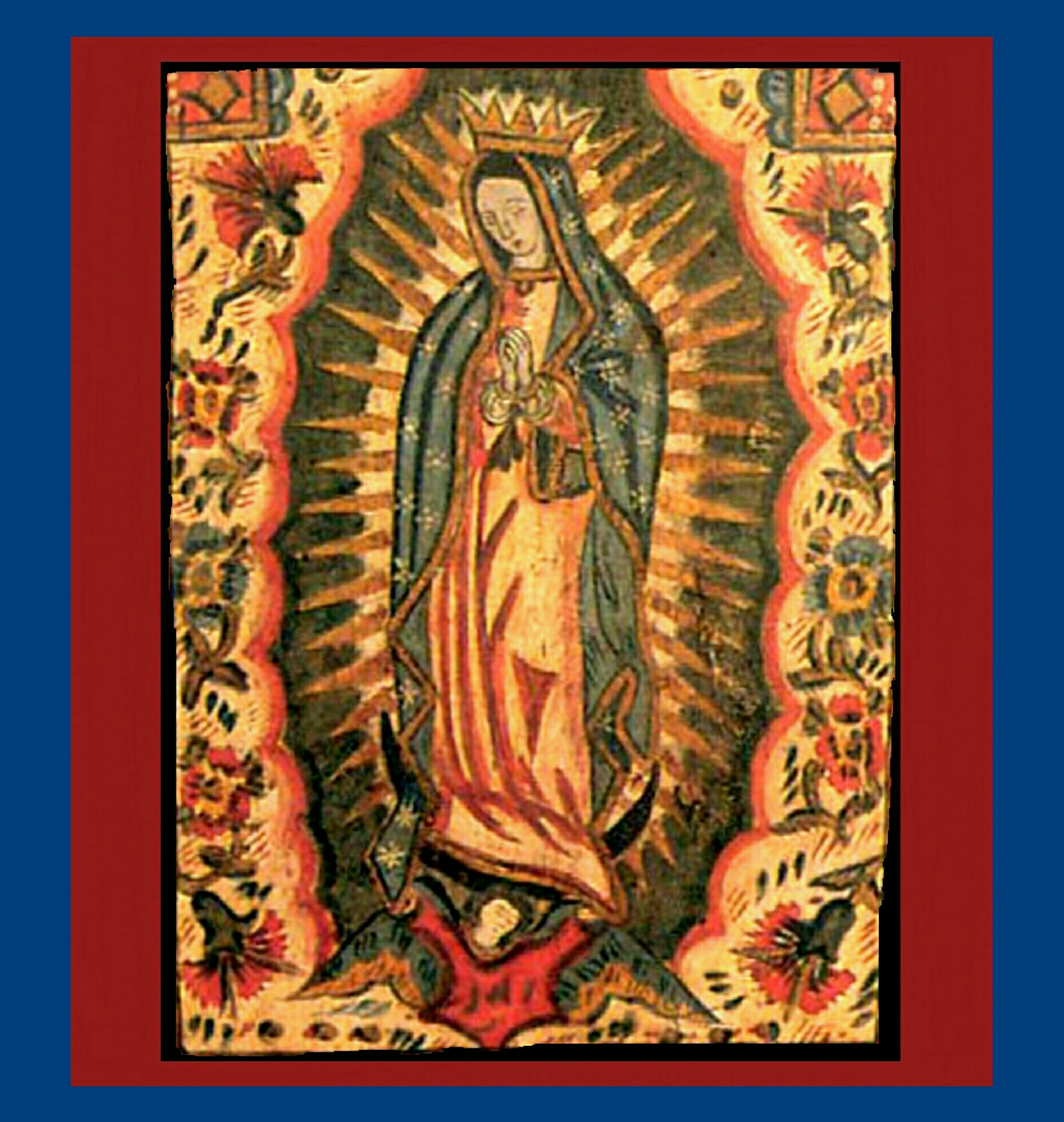 En Español: Recuerde, ¡la Solemnidad de la Inmaculada Concepción de hoy es solo el primer día de una Fiesta Mariana Panamericana de cinco días! [Imagen: detalle de una pintura retablo de Nuestra Señora de Guadalupe, mexicana, anónima, siglo XVIII.]