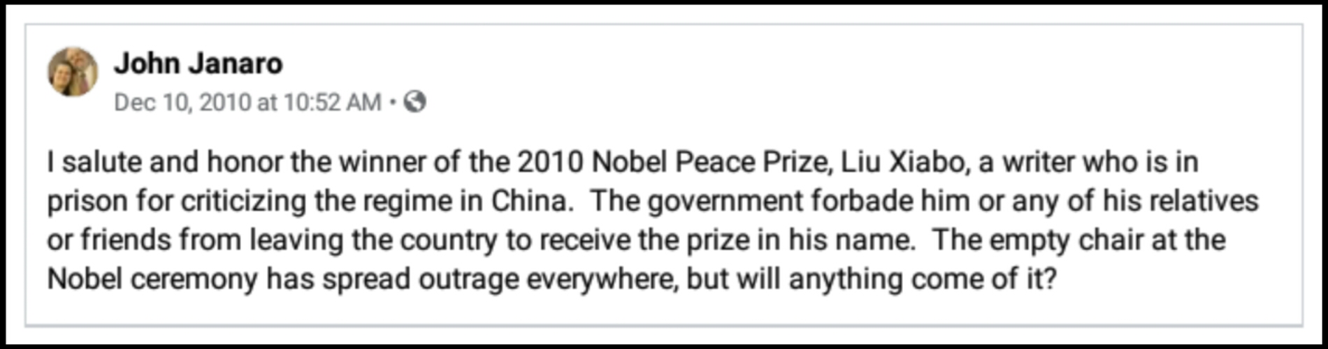 I had a Facebook post on that day, ten years ago (reproduced below). Now, I remember Liu with even more respect, honor, and gratitude. I have learned more about his land, its history, and its people. I have also been moved deeply by what I have read of his writings during the course of my ongoing East Asian studies project. His integrity in the search for truth and for China's authentic path in the emerging new epoch will bear fruit. Really, it doesn't depend on the "outrage" or the global political maneuvering of the "free nations." Liu himself ultimately recognized that the West has its own need for regeneration, and is in no condition to provide solutions for China.
