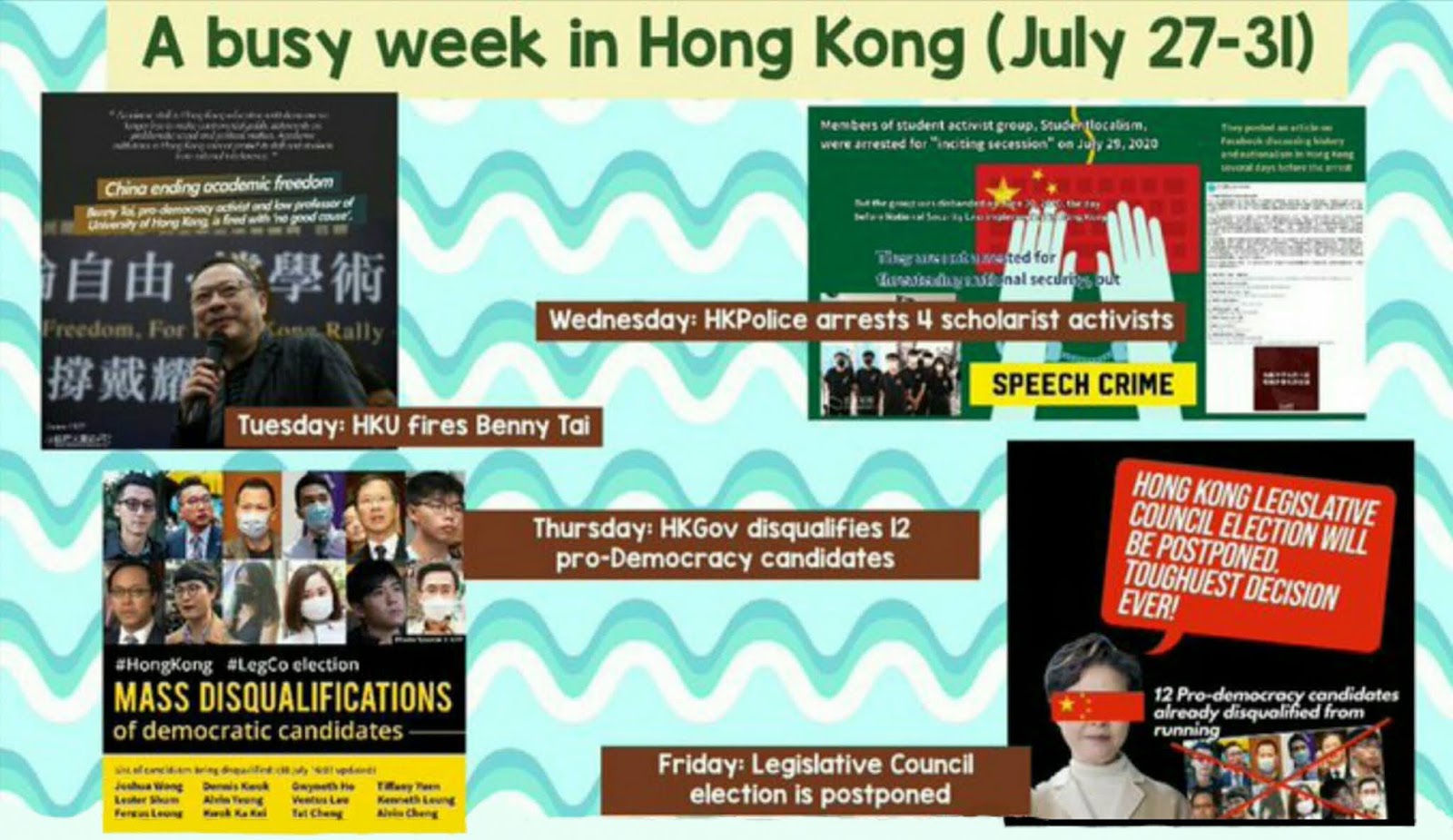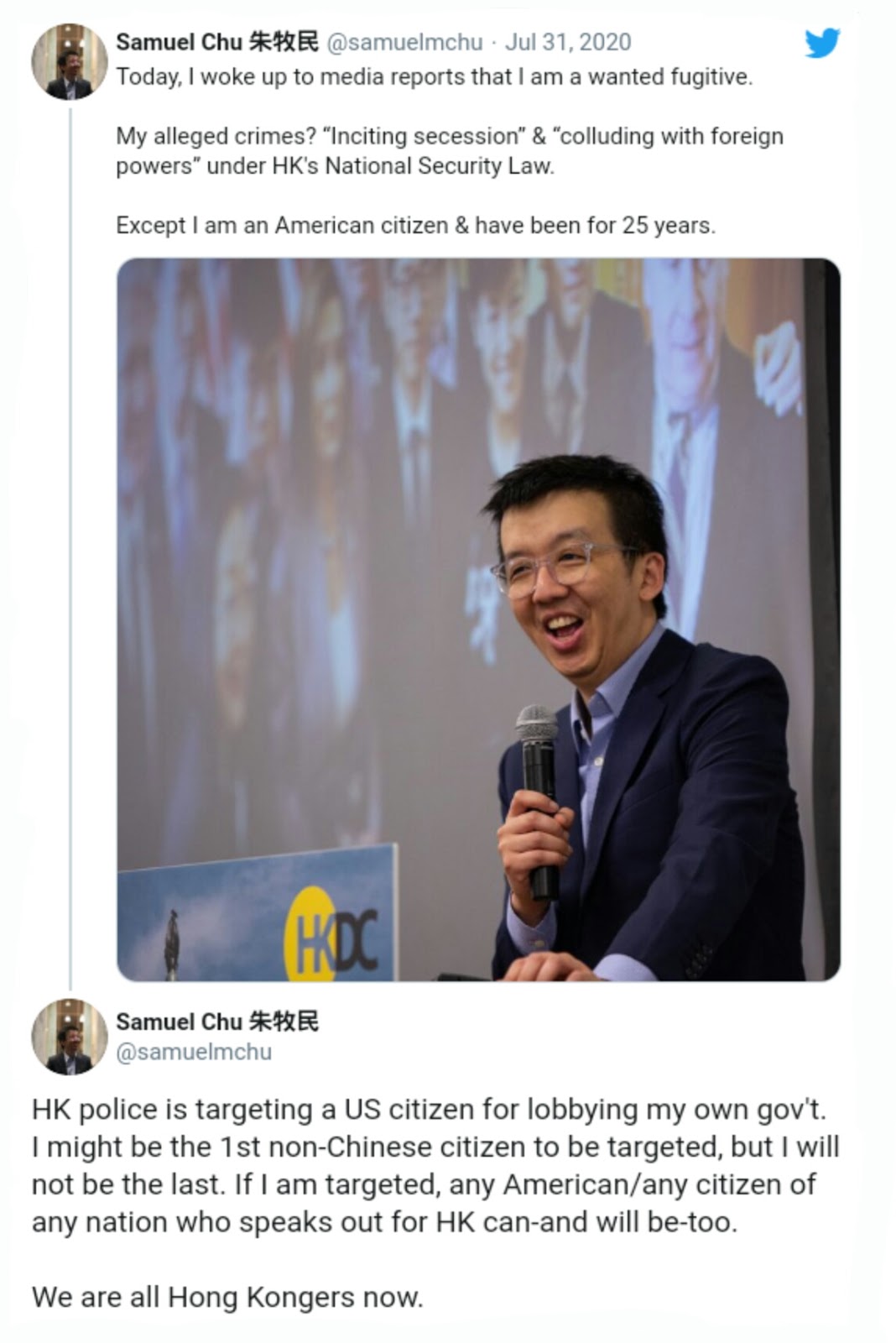 "Like all of you, I found out from news reports that I — along with five other Hong Kongers currently overseas — am on the wanted list for having violated the NSL. I have no idea what is my “crime” and I don’t think that’s important. Perhaps I love Hong Kong too much.