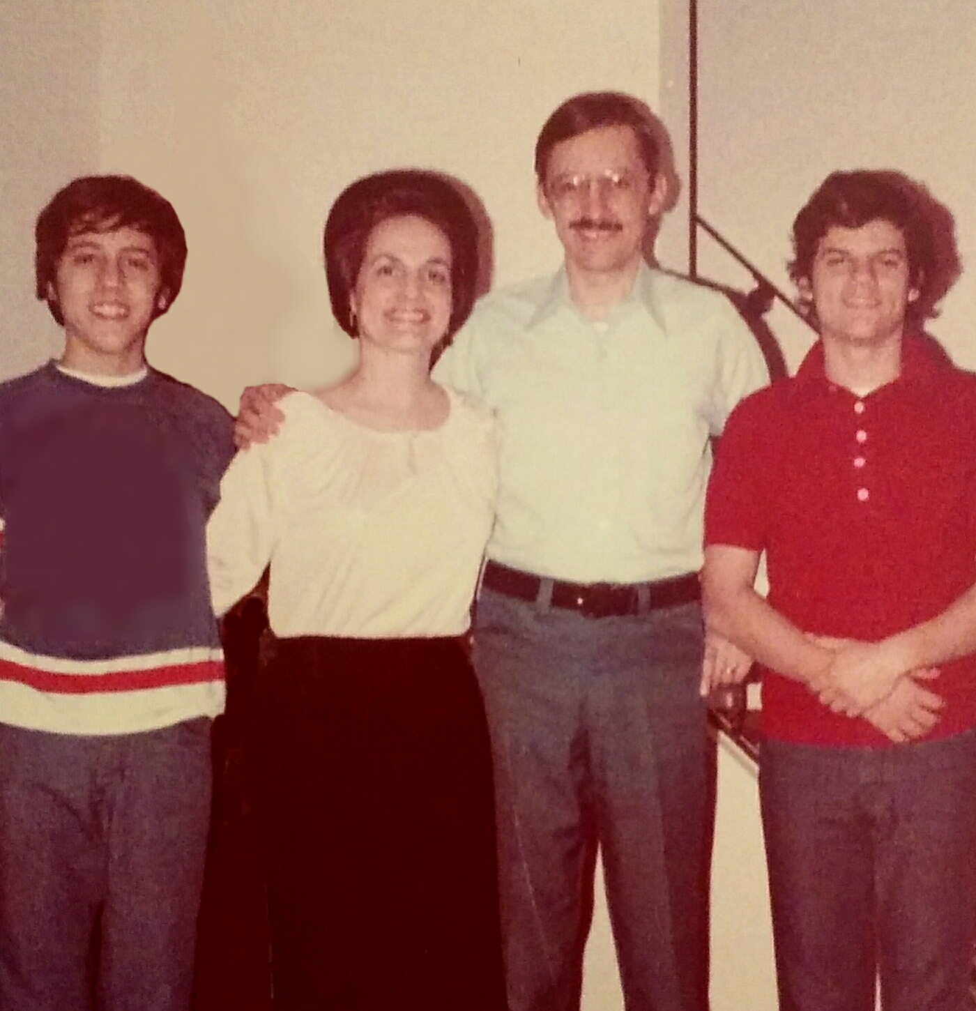 This is my Dad and Mom and their boys, circa... oh, I'm guessing 1977-1978. So he's 42 and she's 39 and we're teenagers. (I needed a haircut!