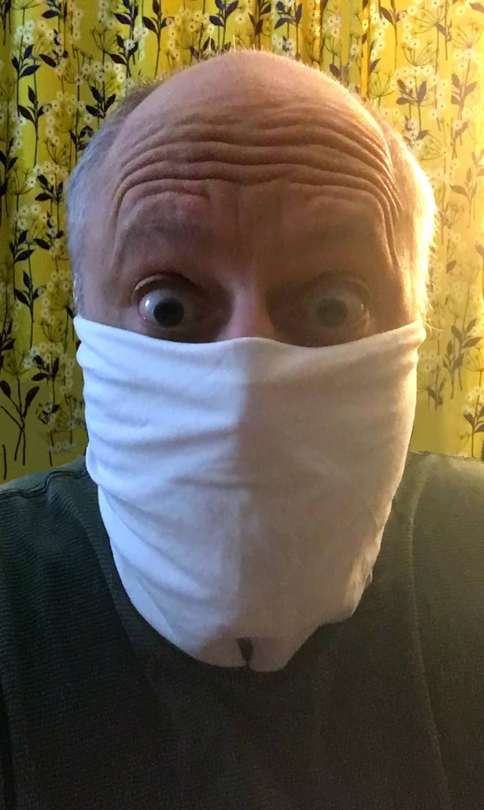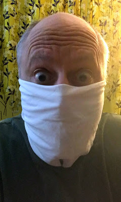 Being both too distracted and too cheap to buy a mask, he has made his rare sojourns wearing a clean dish towel. It seemed humorous to him, going to church looking like a bandit or a bank robber.