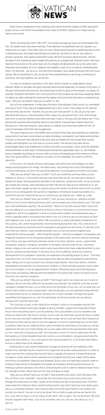 It gives great authority to his words, which are worth pondering in their entirety, and so I present them here from Vatican News (below or click this LINK to Vatican News website):