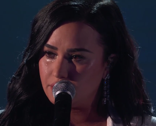 She began to sing and then faltered, choking back sobs. The crowd cheered her on. She could have sung anything if all she wanted was the approval of the audience. But in this moment, Demi showed her depth as an artist. She had a new song, shaped from out of the dark and seemingly hopeless caverns of the soul that she had fallen into (and that she is no doubt still trying to find her way out of). And she sang it with all of her anguish and all of her hope, in a bold, resonant voice that was impossible to ignore. People weren't expecting anything like this. They were stunned by what they heard: