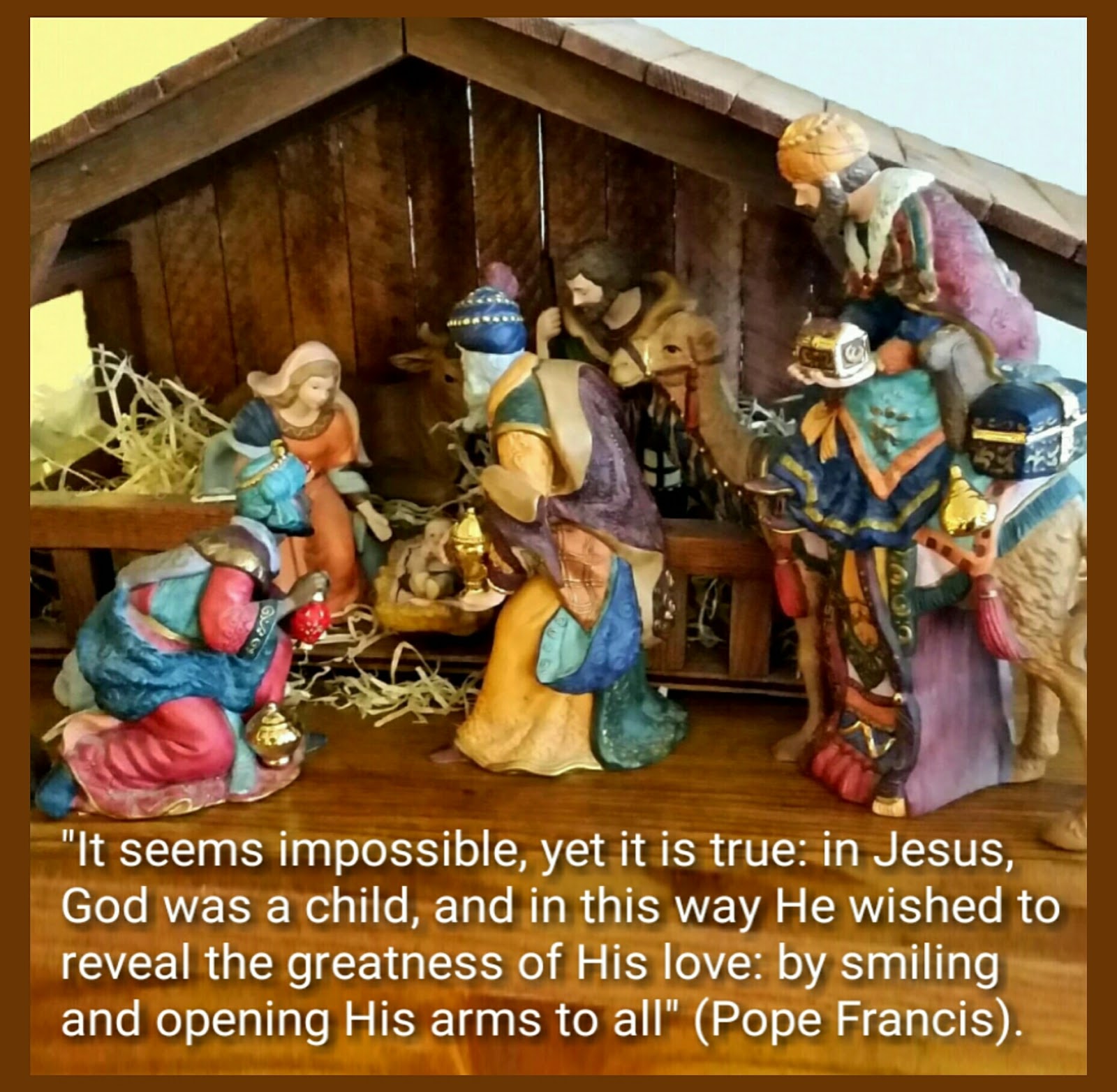 "Mary is a mother who contemplates her child and shows him to every visitor. The figure of Mary makes us reflect on the great mystery that surrounded this young woman when God knocked on the door of her immaculate heart. Mary responded in complete obedience to the message of the angel who asked her to become the Mother of God. Her words, 'Behold I am the handmaid of the Lord; let it be to me according to your word' (Luke 1:38), show all of us how to abandon ourselves in faith to God’s will. By her 'fiat,' Mary became the mother of God’s Son, not losing but, thanks to him, consecrating her virginity. In her, we see the Mother of God who does not keep her Son only to herself, but invites everyone to obey his word and to put it into practice" (Pope Francis, Admirable Signum 7).
