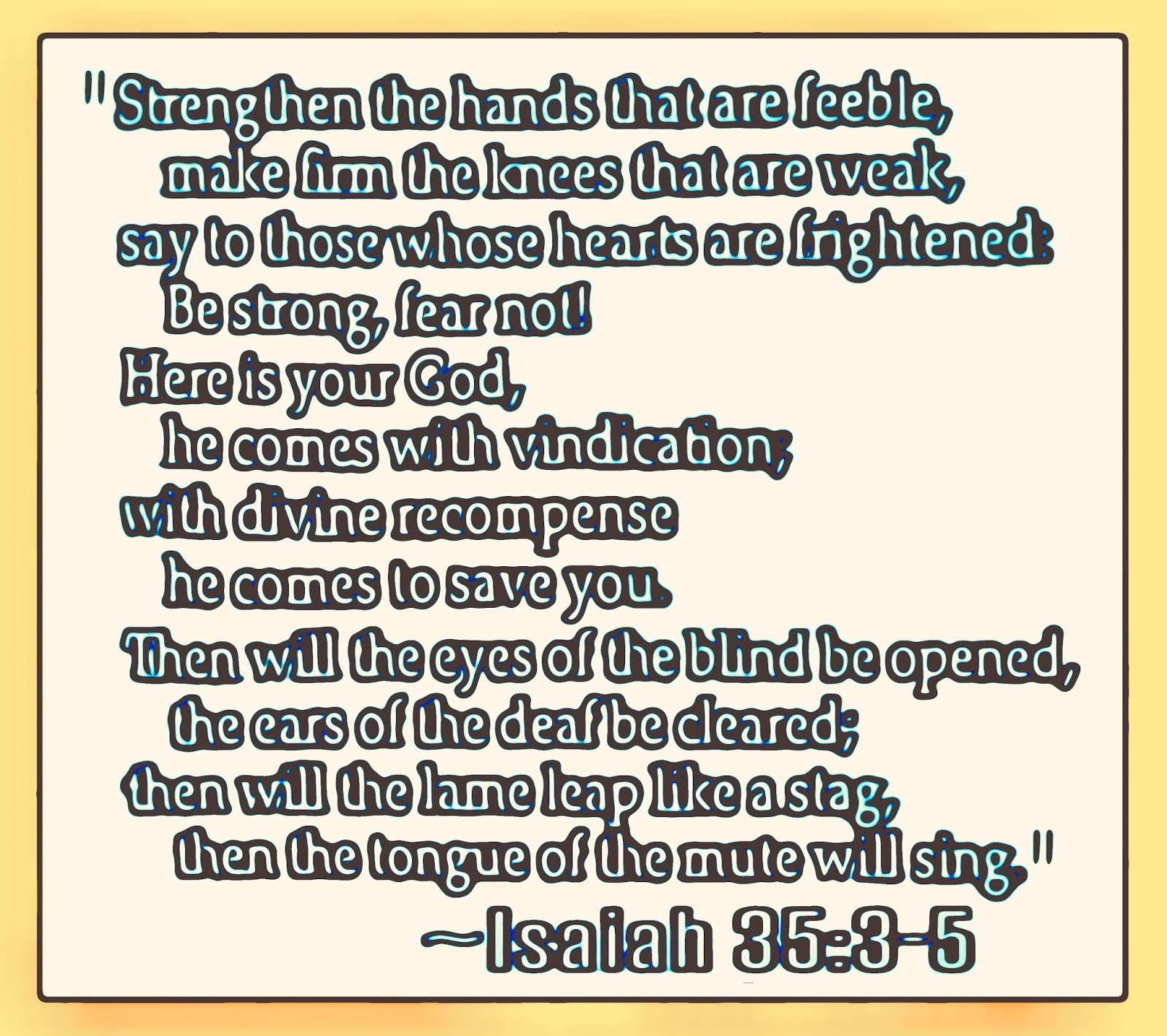 "Be strong, fear not! Here is your God; he comes with vindication; with divine recompense he comes to save you."