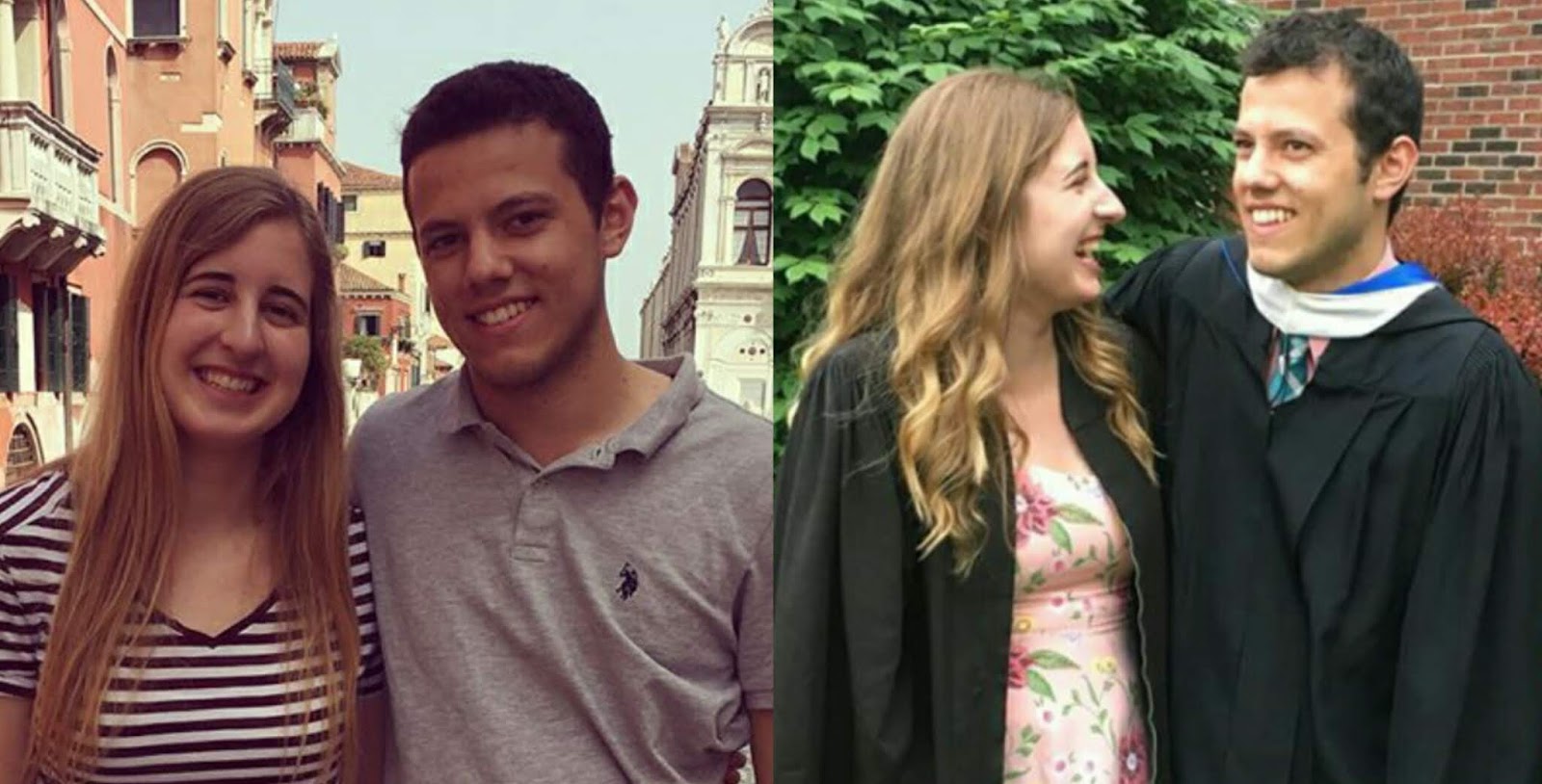 Here on the left is a picture of our son and his fiancée from last year, during the "Rome Semester" (although they were in Venice for that picture). On the right is a picture from last May's graduation.