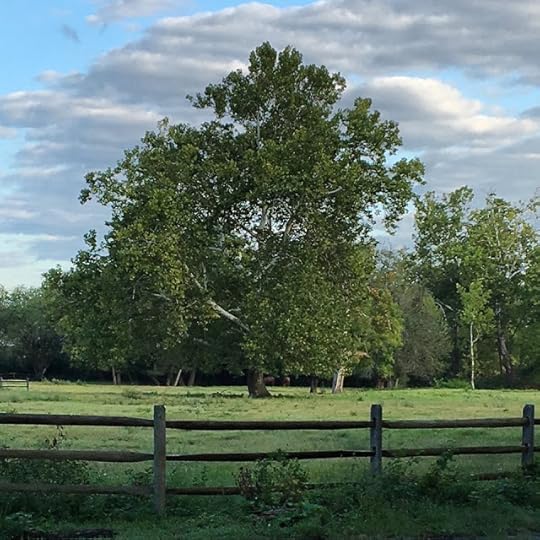 And here is my favorite Sycamore tree in the neighborhood, on the far edge of a horse field. I usually pay more attention to it in Winter, when its bare white branches make such a striking impression as they reach for the sky.